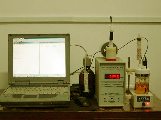 中北大學化工與環境學院胡老師在科研工作中想利用MIA-6型常規分析儀器工作站進行離子型表面活性劑水溶液的臨界膠束濃度的測定,要求我們編制一個能夠自動逐步稀釋,自動測定25℃時的電導率,最終給出一條溶液電導率與濃度的關系曲線新的軟件,于2012年3月將MIA-6型常規分析儀器工作站和應用軟件一起交付使用。由于稀釋的倍數很大,滴定的容器要求很大,這樣攪拌越來越不均勻,造成測量條件的變化,使測量結果造較大的誤差。同時電極都會被淹沒,無法正常工作。他們想了一個辦法加入幾毫升 ,測量25℃時的電導率后,人工抽走幾毫升,始終保持溶液的體積不變,而濃度在發生變化。但操作者不能離開實驗,除了感到緊張外,還容易搞錯,精度不高。后來我們建議再加入一個DAB-2數字自動滴定管,在主軟件的控制下,進行反向工作,自動抽了等精度的測量液,組成了一個全自動的測量系統,減輕勞動強度,又提高了測量精度。